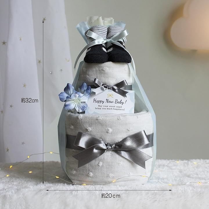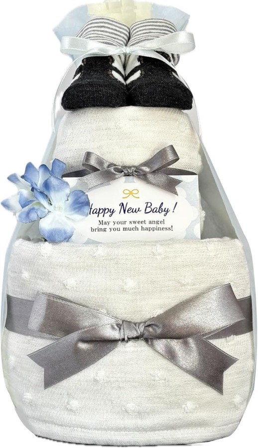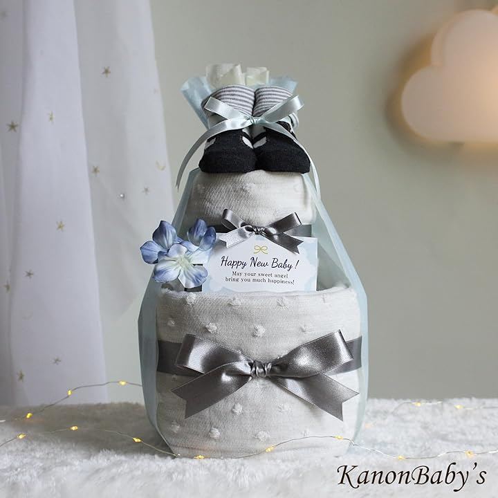 男の子の出産祝いに人気のギフト: オーガニックのタオルとベビーソックスを使ったおむつケーキは、その高品質で人気を集めており、赤ちゃんも喜ぶ贈り物として選ばれています。