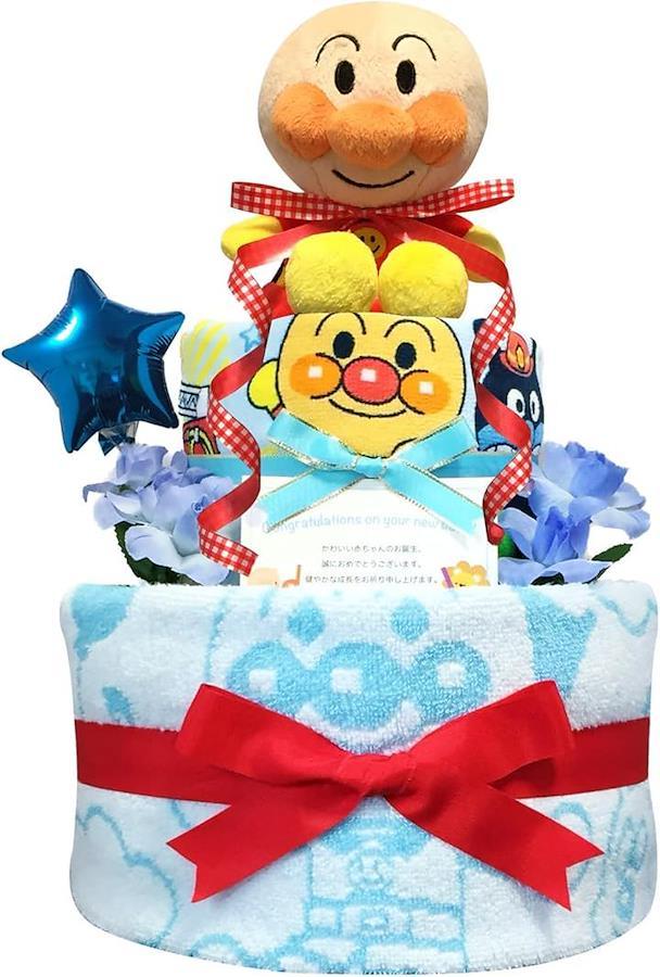 男の子にぴったりの可愛らしい人気キャラクターがデザインされたこのおむつケーキは、キュートさと実用性を兼ね備えています。