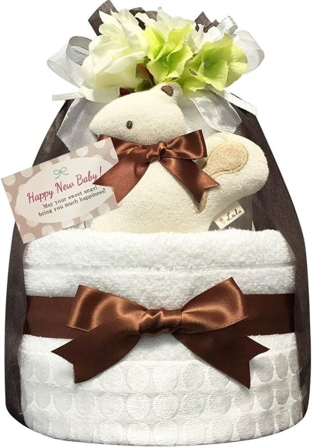 出産祝いに最適な今治タオルのおむつケーキ: 今治タオルを使ったおむつケーキは、赤ちゃんへの特別な出産祝いとして人気があります。