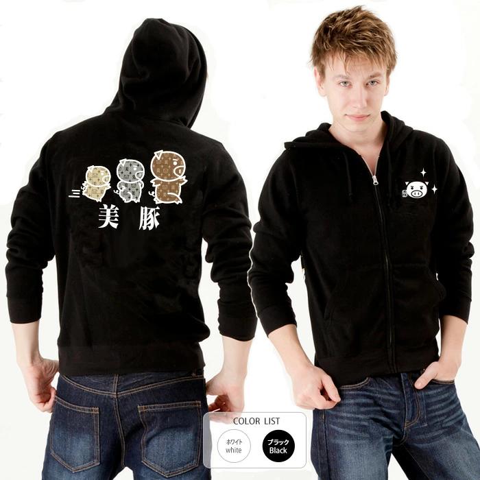 おもしろ,パーカー,ジップ,和柄,元祖豊天商店,三匹集まれば文殊の知恵,新三種の美豚,美豚,※,子供,用はお取り扱いが御座いません。,B01
