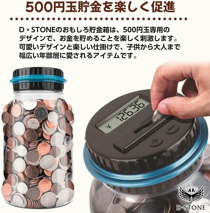「500円玉貯金を楽しく促進」D・STONEのおもしろ貯金箱は、500円玉専用のデザインで、お金を貯めることを楽しく刺激します。