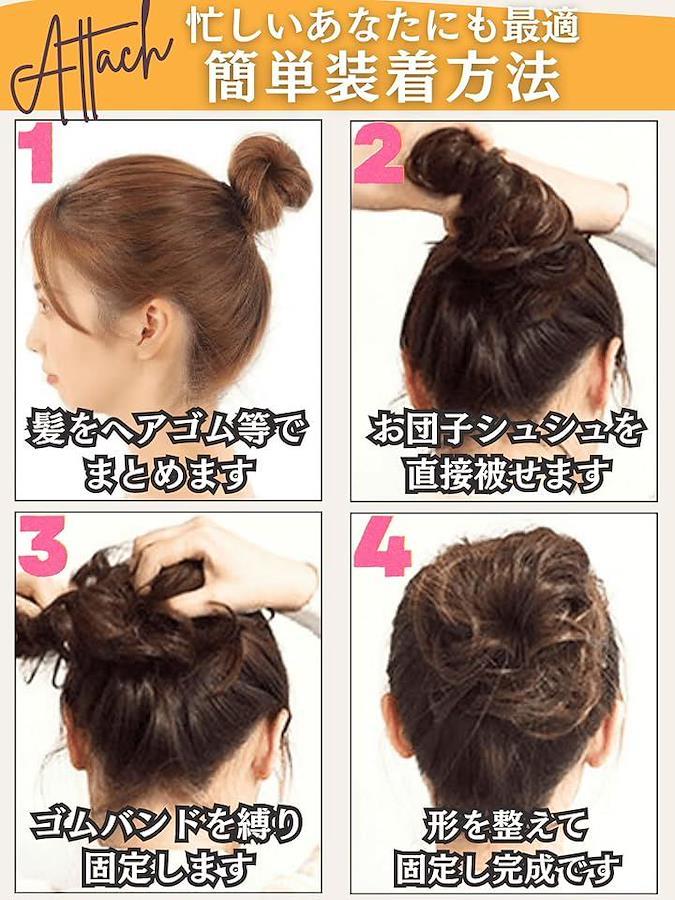 「優れたフィット感」(6)特徴:「お団子シュシュ 巻き髪」 お団子ウィッグをでオシャレに着飾りたい、そんなお悩みの改善に特化した商品です。