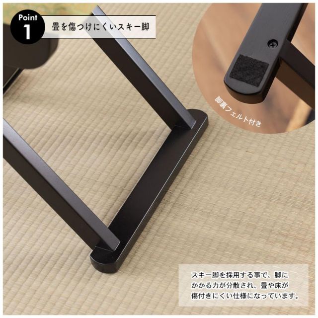 ●畳や床を傷つけにくく、ウレタン入り座面はふかふかで長時間座れる座り心地。