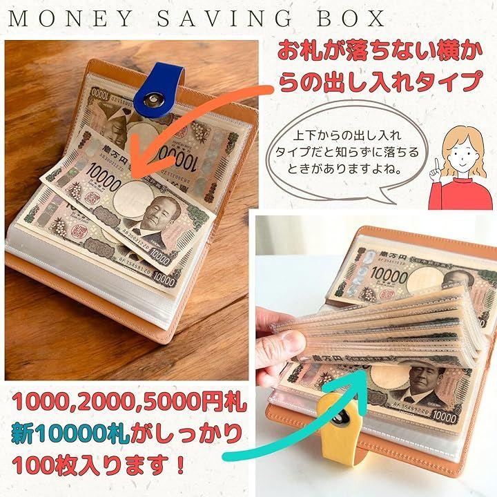 100枚のお札を収納できる手帳型貯金箱は、目標額「100万円」の貯金が可能