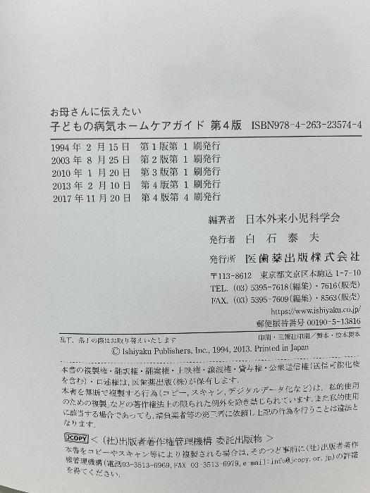 お母さんに伝えたい子どもの病気ホームケアガイド第4版 医歯薬出版 日本外来小児科学会