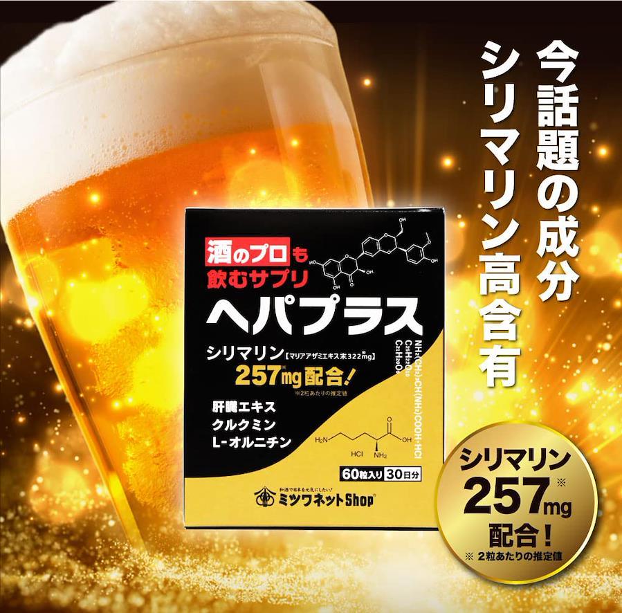 ■サイズ:??10x8x2cm;40g■商品名 酒のプロも飲むサプリ ヘパプラス■名称 マリアアザミエキス末含有加工食品■原材料名 マリアアザミエキス末(中国製造)、豚肝臓酵素分解物(豚肝臓酵素分解物、デキストリン)、ウコン抽出物、L-オルニチン塩酸塩/結晶セルロース、微粒二酸化ケイ素、ステアリン酸Ca■内容量 24g(400mg×60粒)■栄養表示成分 1日2粒(800mg)当たり エネルギー:2.99kcal、たんぱく質:0.25g、脂質:0.02g、炭水化物:0.002g、食塩相当量:0.002g■お召し上がり方栄養補助食品として1日2粒を目安に水またはぬるま湯とともにお召し上がりください。※ご注意■原材料をご参照の上、食品アレルギーのある方はお召し上がりにならないでください。■体質、体調に合わない場合は、使用を中止し、医師にご相談ください。■疾病治療中の方、及び妊娠・授乳中の方は医師にご相談の上お召し上がりください。■乳児の手の届かないところに保管してください。■天然物を使用しているため色や風味が多少変わる場合がありますが、品質には問題ありません。■賞味期限 商品箱裏面に記載■保存方法 高温多湿を避け、直射日光の当たらない場所に保存してください。■加工所 有限会社ヤベコー■千葉県茂原市緑が丘3丁目1番地1■販売者 有限会社ミツワ酒販東京都練馬区貫井4-24-14 ミツワビル2FTEL:03-3999-7075 酒のプロも飲むサプリ ヘパプラス マリアアザミエキス末含有加工食品 内容量:24g(400mg×60粒) ■重要なお知らせ原材料・成分マリアアザミエキス末(中国製造)、豚肝臓酵素分解物(豚肝臓酵素分解物、デキストリン)、ウコン抽出物、L-オルニチン塩酸塩/結晶セルロース、微粒二酸化ケイ素、ステアリン酸Ca