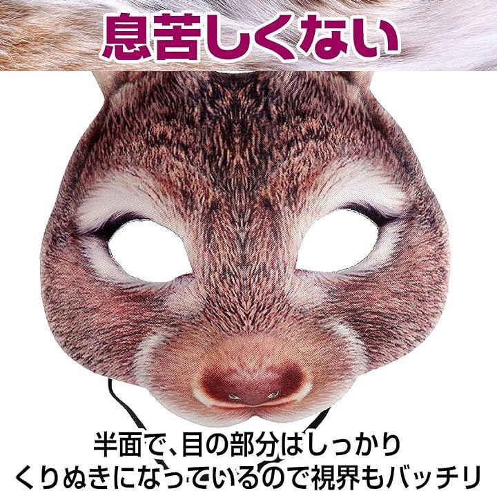 アニマルお面は、後頭部はゴム装着、頭と口元を覆わないハーフタイプ。