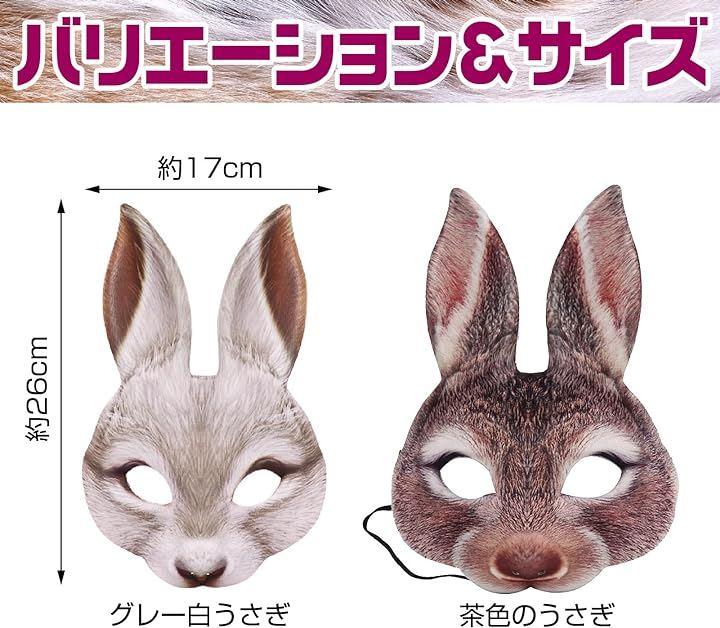ウサギマスクセット、ウサギ:幅17x高さ26cm、モカ、白グレー、EVA、後ろ黒ゴム、ハーフタイプ*モニターの環境により、色の見え方に若干差が生じる場合がございます。