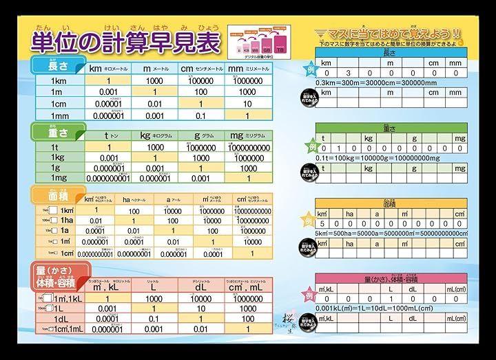 「計算と公式」1.単位の計算早見表:長さ重さ面積 体積容積の単位 計算が一覧できる 表です。
