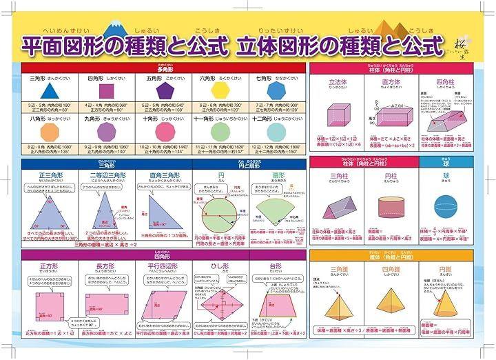 2.平面図形と立体図 形の種類と公式:平面図形と立体図 形の種類と公式を わかりやすいイラ ストでまとめてい ます。