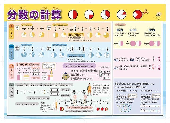3.分数の計算:分数の足し算、引 き算、掛け算、割 り算の基本が学べ ます。