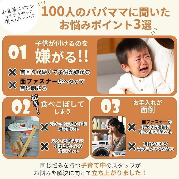 ビニール素材や面ファスナーだと素材が硬くてお子さんが嫌がる」 そんなパパママは是非お試しください。