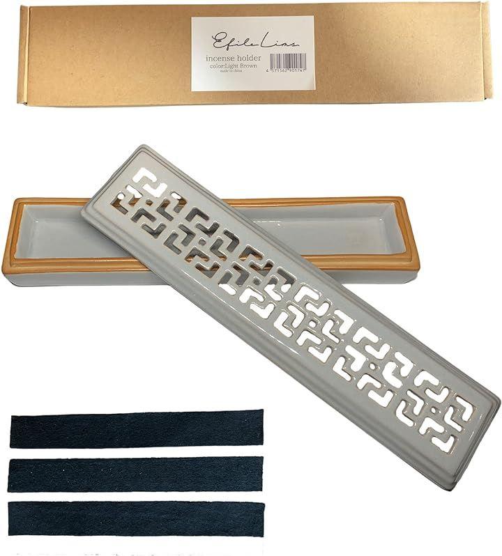 「製品仕様」製品サイズ:長さ24cm x 幅6cm x 厚さ4.2cm 本体重量:約450g お香の長さ:21cmまで可能 素材:陶器