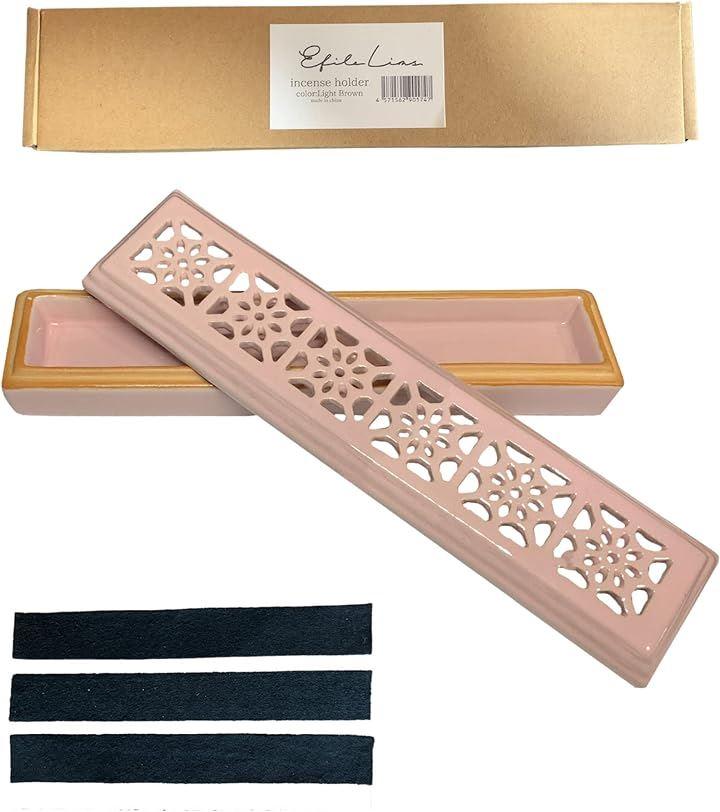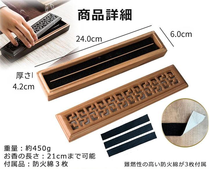 「製品仕様」製品サイズ:長さ24cm x 幅6cm x 厚さ4.2cm 本体重量:約450g お香の長さ:21cmまで可能 素材:陶器