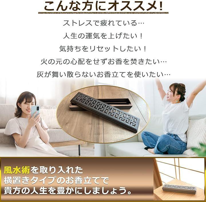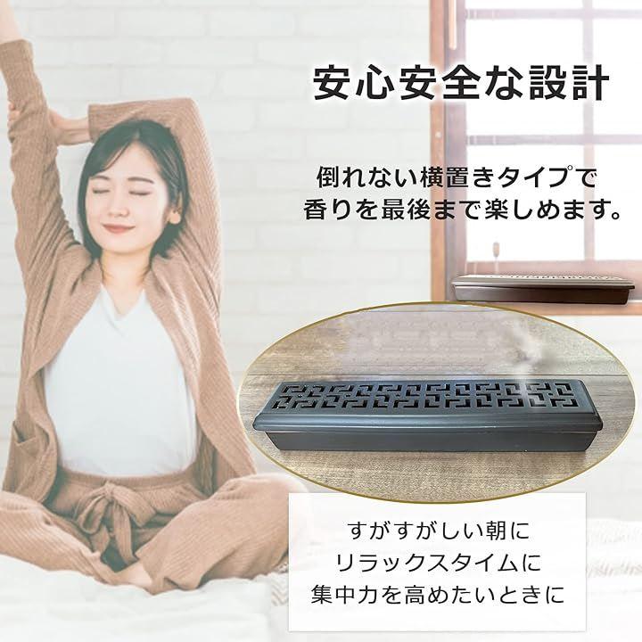 「寝かせて使用できて安全」横置きタイプのため、お香や線香を最後までお楽しみいただけます。