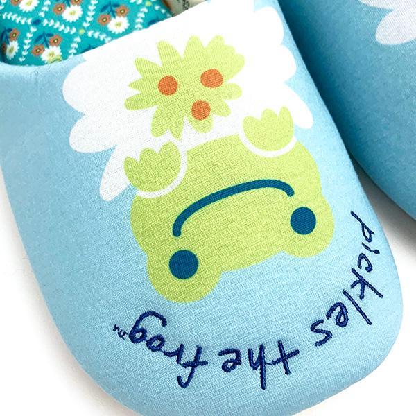 かえるのピクルスのレトロな雰囲気がかわいいルームシューズ。クッション性もある軽やかな履き心地♪インソールがレトロな花柄なので、置いておくだけでもかわいいですね♪◆サイズ:フリー(23?25cm)