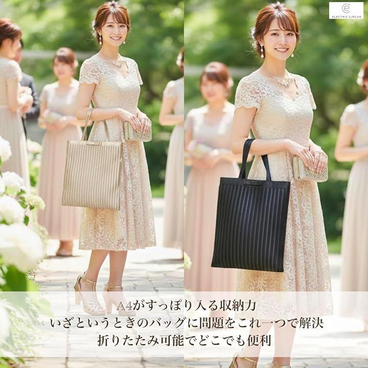 「パーティーバッグの収納問題をスマートに解決」見た目は控えめで上品「サブバッグ感」が出すぎない、A4がすっぽり入る収納力。