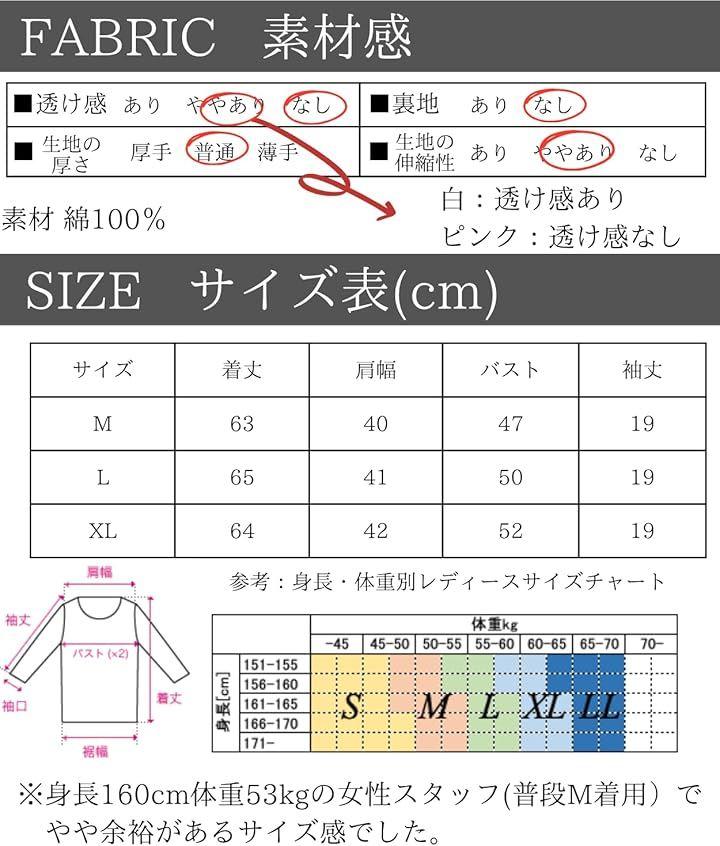 「素材」綿100%「カラー」ホワイト パープル「サイズ(cm)」M 着丈63/バスト47/肩幅40/袖丈19 L 着丈65/バスト50/肩幅41/袖丈19 XL 着丈64/バスト52/肩幅42/袖丈19