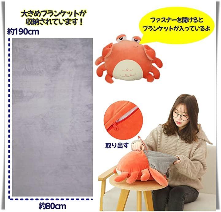 かにぬいぐるみブランケットひざ掛けクッション大きめ収納柔らかいかわいい