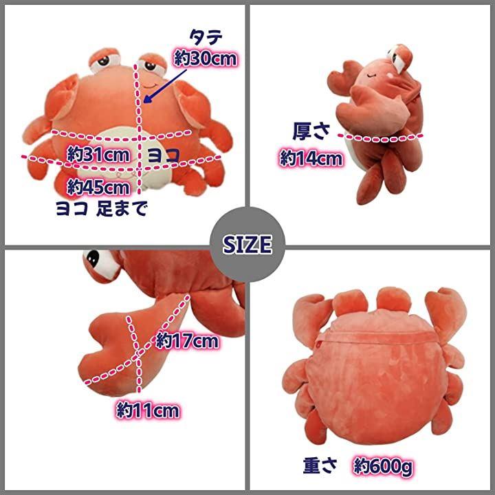 かにぬいぐるみ本体:タテ約30cm ヨコ約31cm 厚さ約14cm 重さ約600g