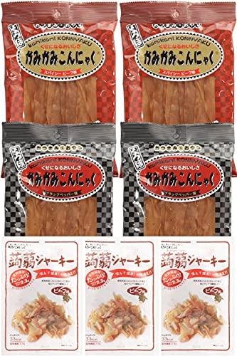 通常1-5営業日で発送合計7袋(かみかみこんにゃく スパイシービーフ味 2袋、かみかみこんにゃく ブラックペッパー味 2袋、蒟蒻ジャーキー 3袋)まるでジャーキーのようで、でも確かにこんにゃくでできているという不思議な食べ物。ダイエット中のおやつや食事前に食べ過ぎ対策として取り入れるのにもぴったり。そのままお召し上がりください。賞味期限は商品に記載。【重要】メーカーによる商品リニューアルに伴いパッケージ(内容量も含む)変更が行われた場合、新パッケージでお届け致します事ご了承願います。