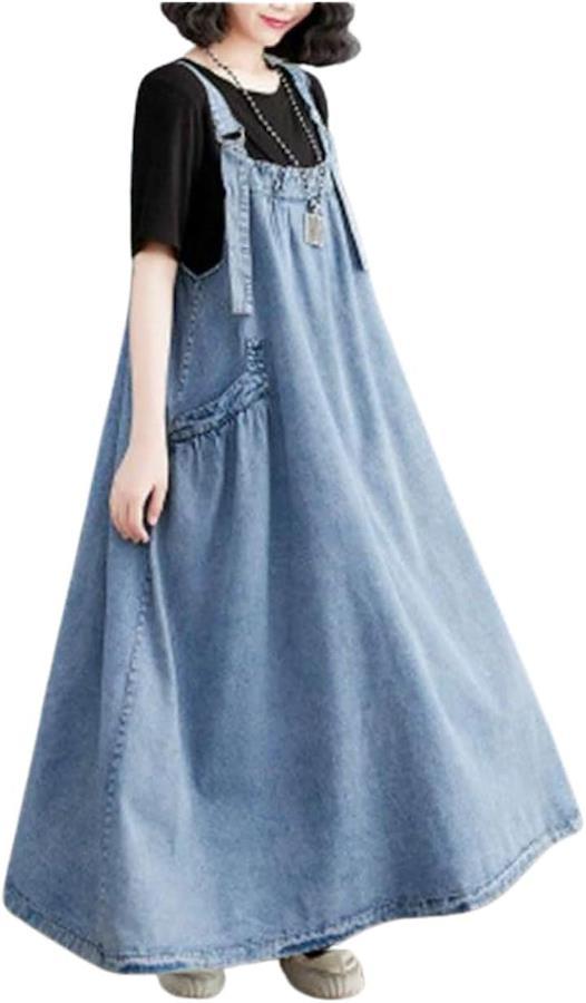 ナチュラルに広がるフレアラインがフェミニンな雰囲気のデニムジャンパースカート 肩紐は自由に自分サイズに調節可能。
