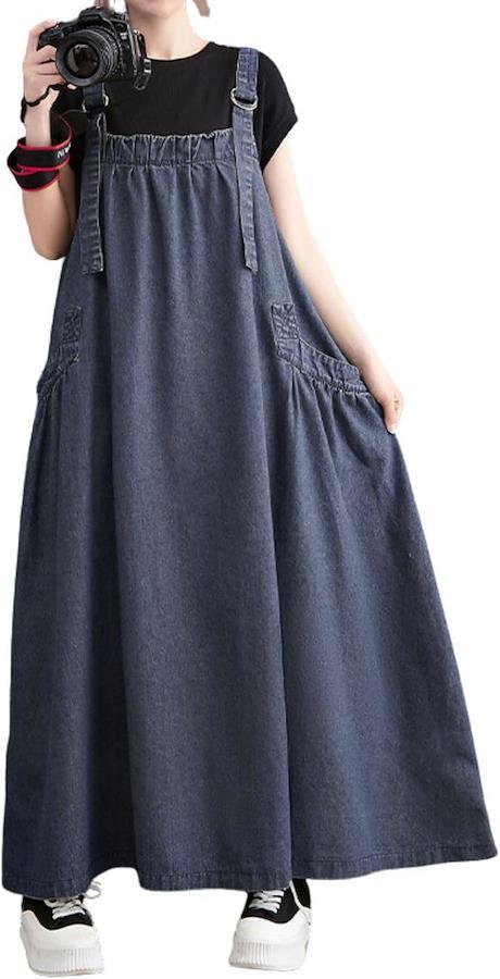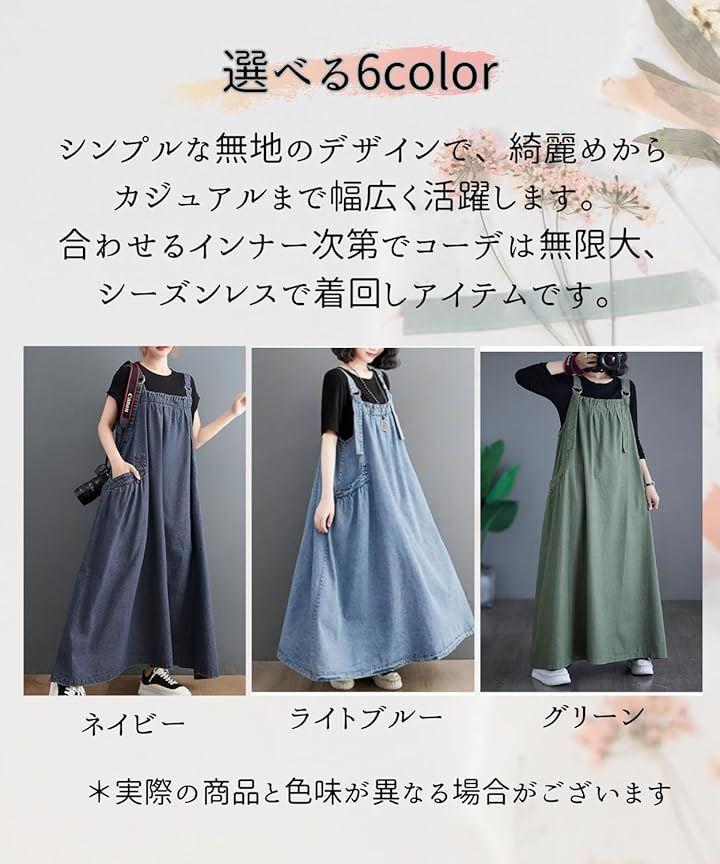 ナチュラルに広がるフレアラインがフェミニンな雰囲気のデニムジャンパースカート 肩紐は自由に自分サイズに調節可能。