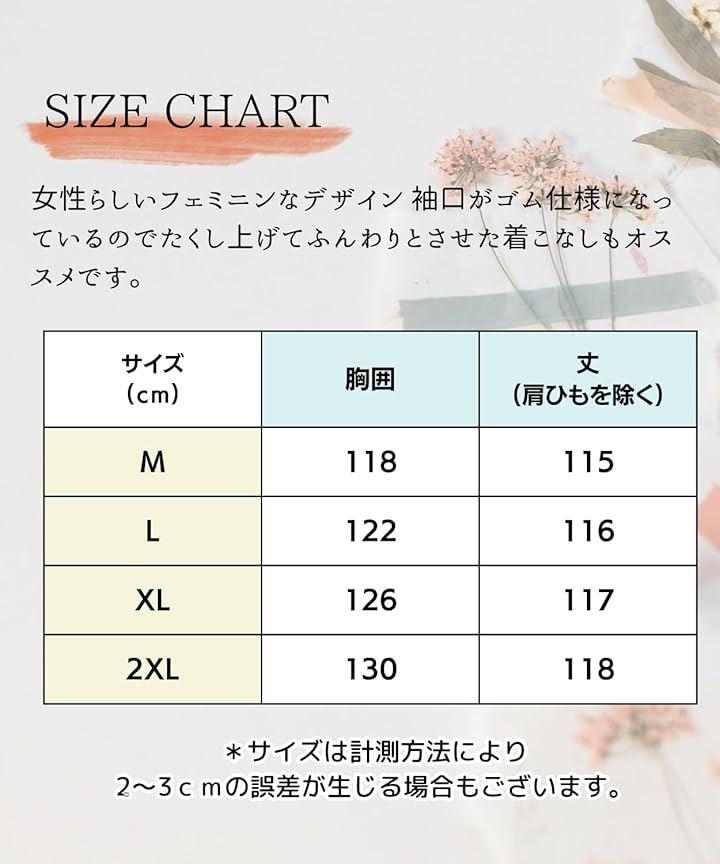 「サイズ」M・L・XL・2XL 「M」バスト118/丈115(肩ひもを除く) 「L」バスト122/丈116(肩ひもを除く) 「XL」バスト126/丈117(肩ひもを除く) 「2XL」バスト130/丈118(肩ひもを除く)