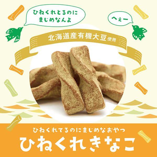 ひねくれきなこ(きなこねじり)は、尾道のきなこ工房で“皮ごとまるごと”じっくり焙煎した、北海道産有機大豆のきなこを使用してます。