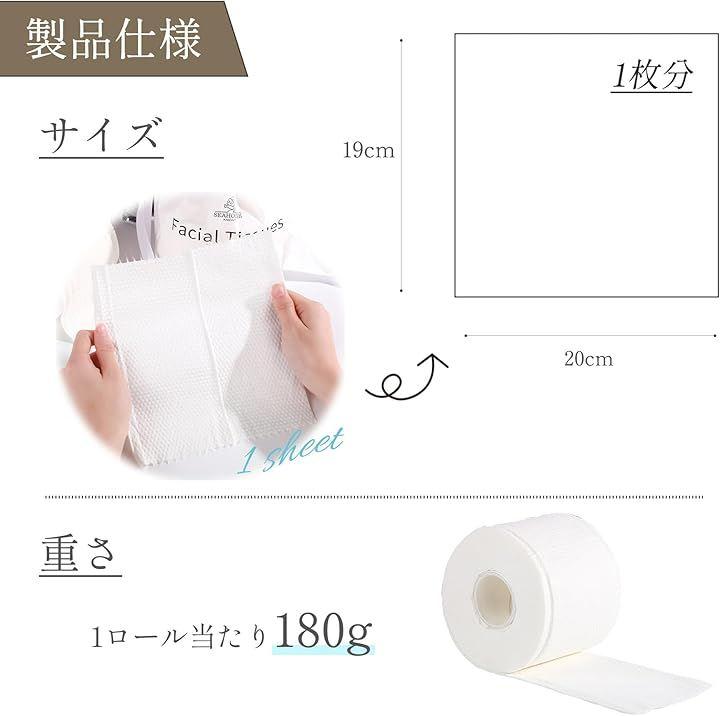 進化した、フェイシャルタオル、スキンコットンタオル、使い捨てクレンジングタオル(ペーパータオル)、20cmx19cmサイズ、ロールタイプ 3個セットです。