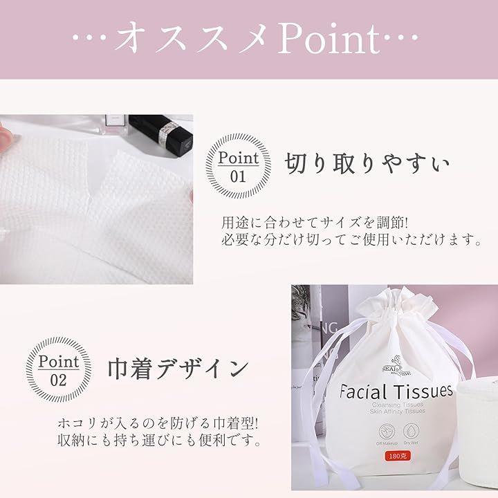 毛羽立ちなしで 保湿、 メイク落とし。