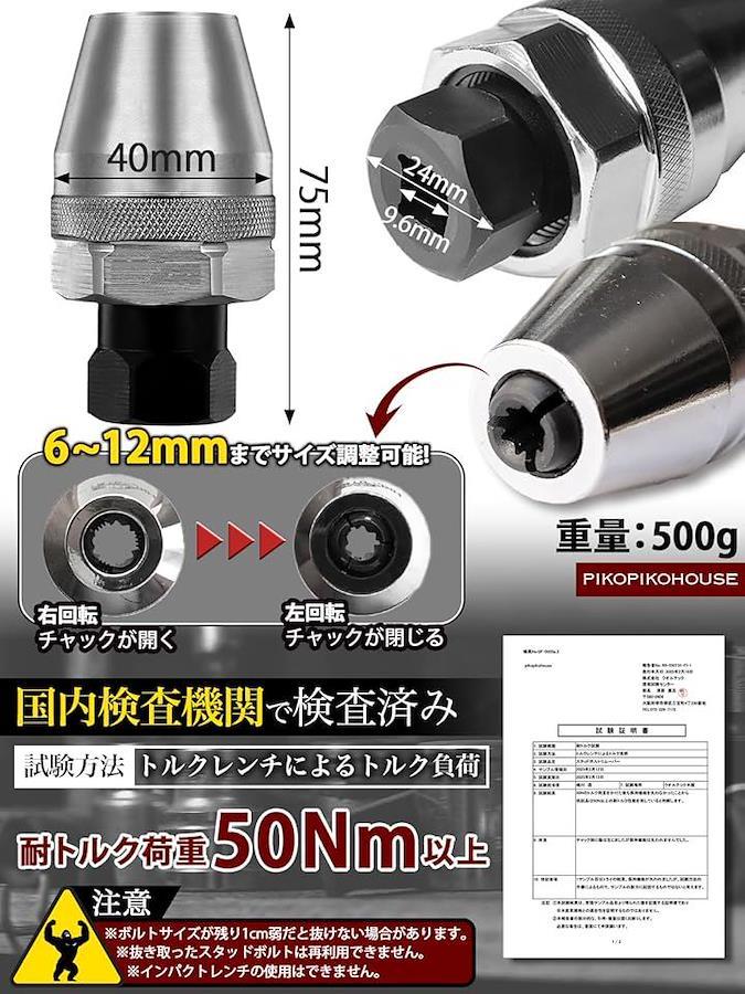 *対応サイズ:M6~M12(6mm~12mm) *対応工具:3/8インチドライブ対応。