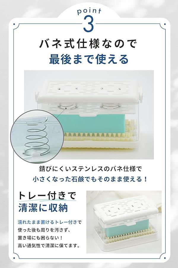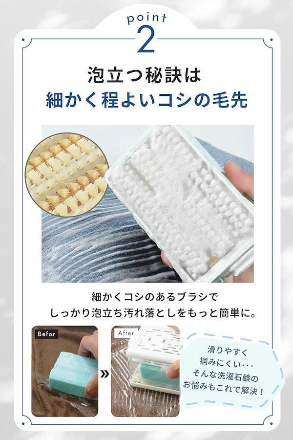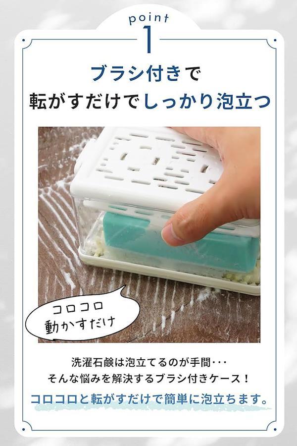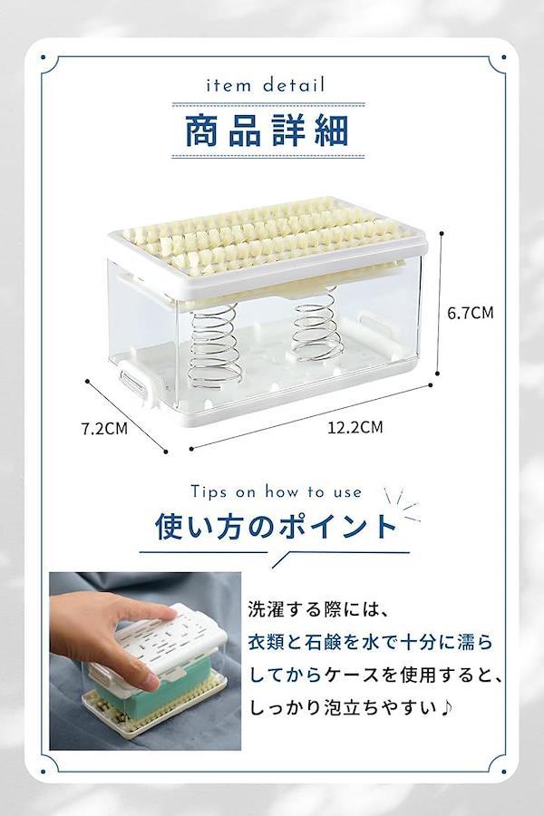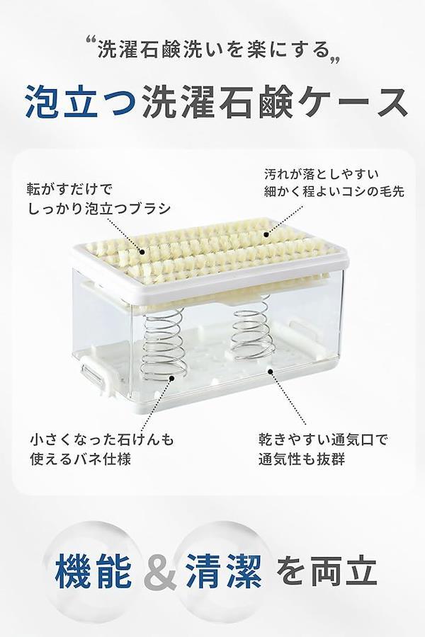 「SNSでバズった泡立つ洗濯石鹸ケース」これ1つで洗濯石鹸の収納と手洗い洗濯時の汚れ落としができる、使いやすさと清潔さを追求した泡立つブラシ付き泡立つ洗濯せっけんケースです。