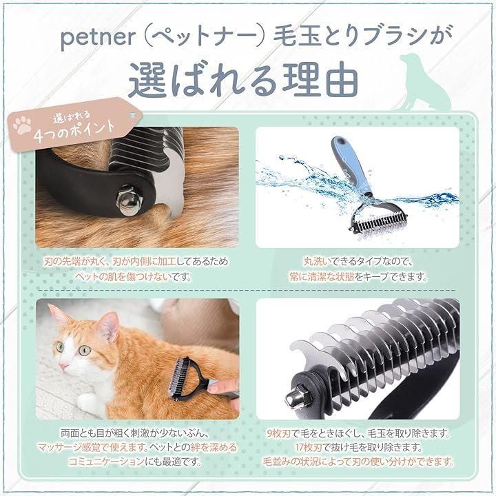「ごっそり抜け毛除去」両面刃構造により粗目で毛をときほぐし、毛玉を取り除きます。