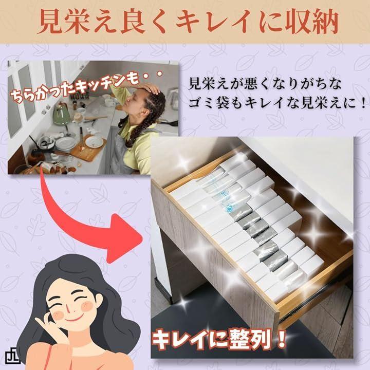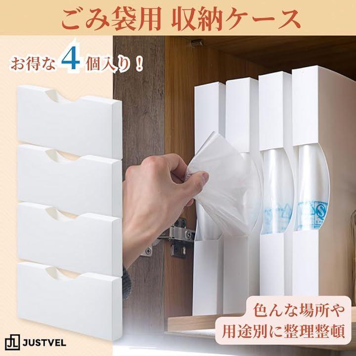 「スマートな収納でキッチンをすっきり整理」ごみ袋収納ケース4個セットは引き出しや棚の中をスッキリ整理整頓できる便利なストッカーです。