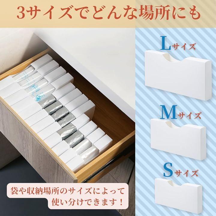 「簡単設置で即効性のある収納改善」ホルダーに袋を引っ掛けてケースにセットするだけの簡単な補充方法で誰でも手軽に使用できます。