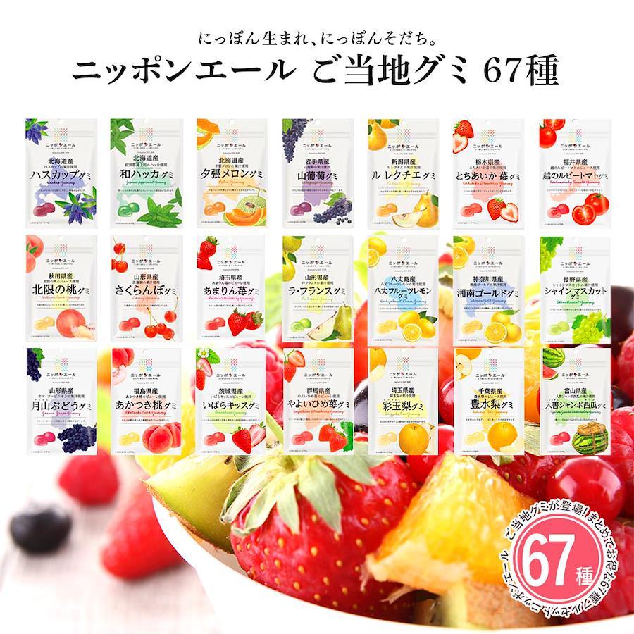 【製品の特長】●ニッポンエールは、「日本全国47都道府県から届けられる日本産のたべものに、そしてにっぽんに、ここからエールをおくろう。」をコンセプトに誕生したブランドです。●にっぽん生まれ、にっぽん育ち。国産素材の果実グミ●自宅でご当地グミを楽しもう!●57種類のグミを詰め合わせたアソートセットです。●個性豊かなグミの食べ比べをお楽しみください。
