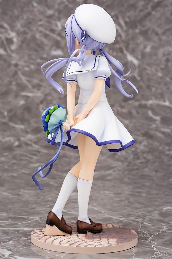 『こ?注文はうさき?て?すか??』より、清楚な夏制服姿のチノが登場!爽やかな色合いで纏まったワンピーススタイルの制服は、風になびくスカートのふわりとした造形や柔らかそうなパフスリーブなど丁寧に作り込んでいます。ぱちっとした目元はもちろん、毛先のグラデーションや、色鮮やかなブーケ、足元の石畳の台座など細部に渡って雰囲気満点です♪メグ・マヤと共にチマメ隊3人を揃えてお楽しみください!