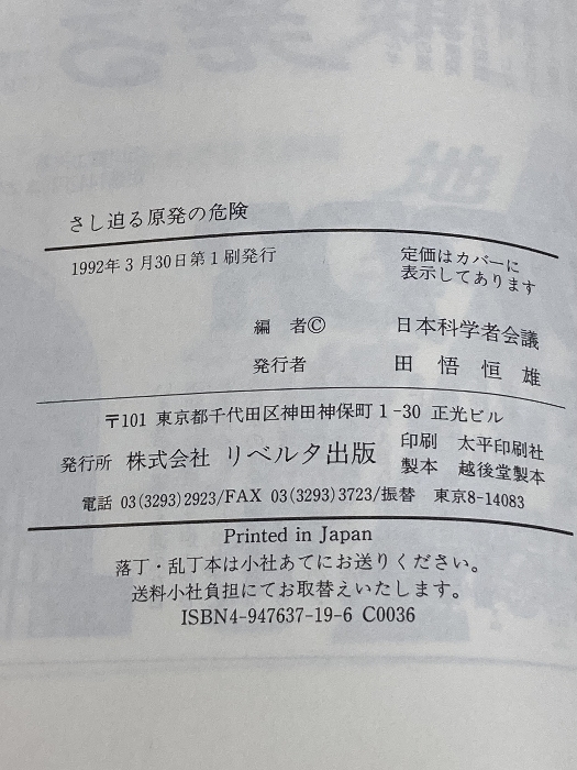 ■商品詳細■ 商品名・さし迫る原発の危険/ ■商品状態■表紙にスレ、ヤケ、キズ、傷み、ヨレ、天地小口に多数のシミ、多少のスレ、ヤケ、キズ、本に反り、歪み、折れ目、多少のスレ、ヤケ、キズ、傷みカバーにスレ、ヤケ、キズ、傷み、があります。本を読むことに支障はございません。※注意事項※■毎商品チェック後出品しておりますが、中古品ということもあり、多少の書き込み等のチェック漏れがあった際はご容赦下さい。■付録等の付属品がある商品の場合、記載されていない物は『付属なし』とご理解下さい。■併売販売をしているため、在庫切れの場合はキャンセルとなります。予めご了承ください。