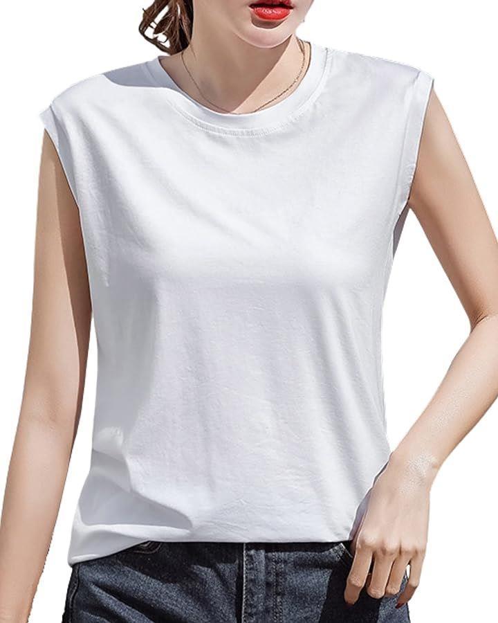 「ノースリーブでも二の腕細見え」フレンチスリーブ風に長めに取った肩幅のシルエットがシンプルなのにおしゃれに見せ、二の腕も細く見せてくれるデザインです。