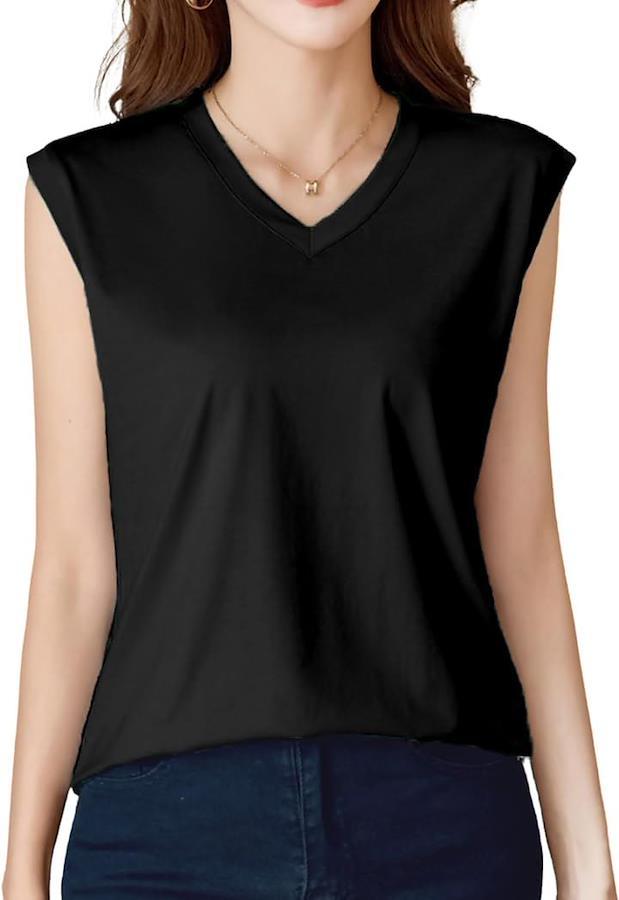 「きれいめシンプル」肌触りなめらかな無地のノースリーブプルオーバーです。
