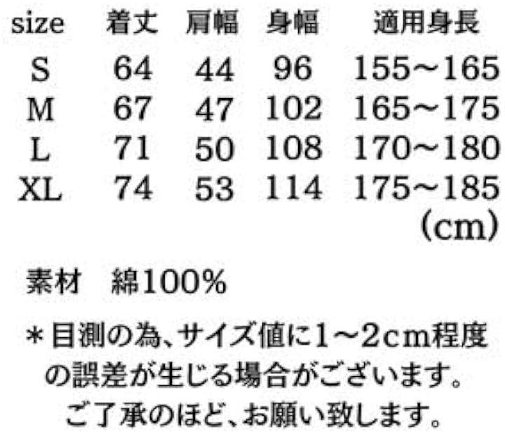 「サイズ」S:着丈64cm、肩幅44cm、身幅96cmM:着丈67cm、肩幅47cm、身幅102cmL:着丈71cm、肩幅50cm、身幅108cm XL:着丈74cm、肩幅53cm、身幅114cm