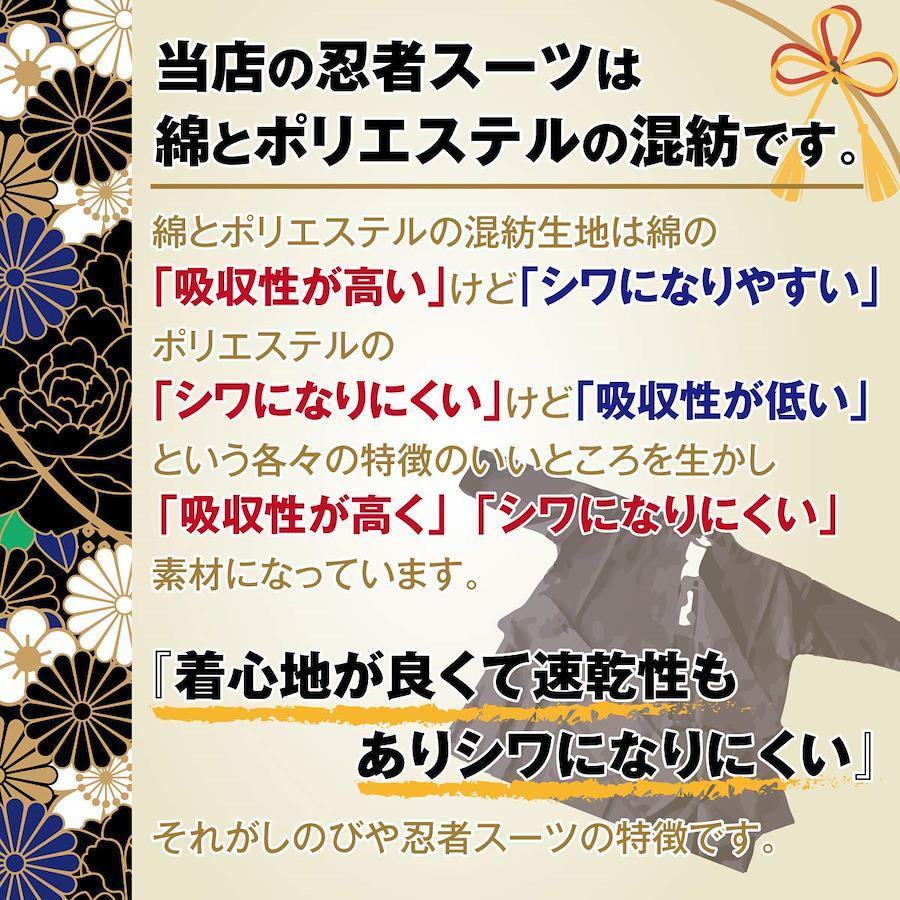 雑貨店等でよく見るコスプレ衣装と違い、本物の忍者衣装としての耐久性があるので、繰り返し着ていただけます。