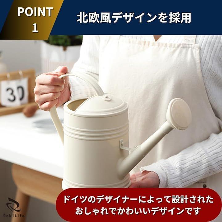 「北欧風デザインを採用」北欧風デザインの2L容量のじょうろです。