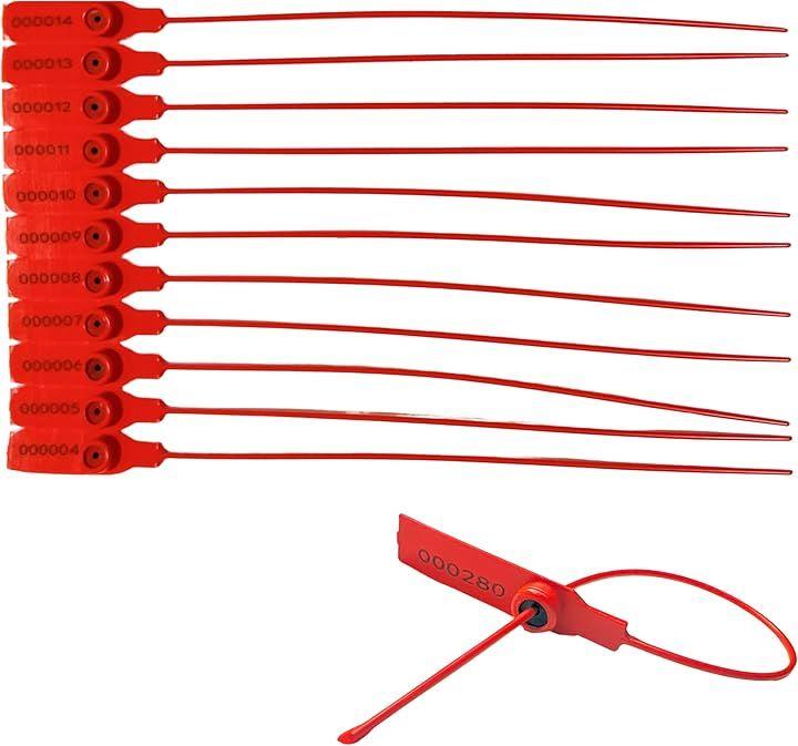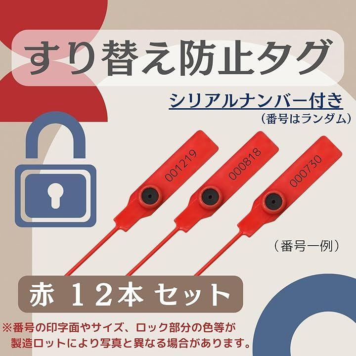 「商品仕様」全長:約275mm,幅:約15mm,ループ部分:約215mm,素材:PP、PE、スチール製ロックシリンダー,セット数:赤x50本、黄x50本(計100本)