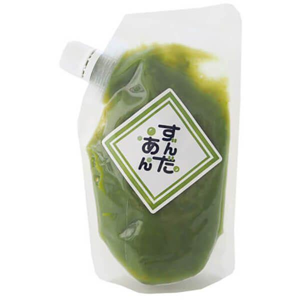 ずんだあん(キャップ付き)は食べきりサイズのスタンドパックでとても便利!お餅やお団子に絡めたり、トーストに塗って、幅広くお使いいただけます。
