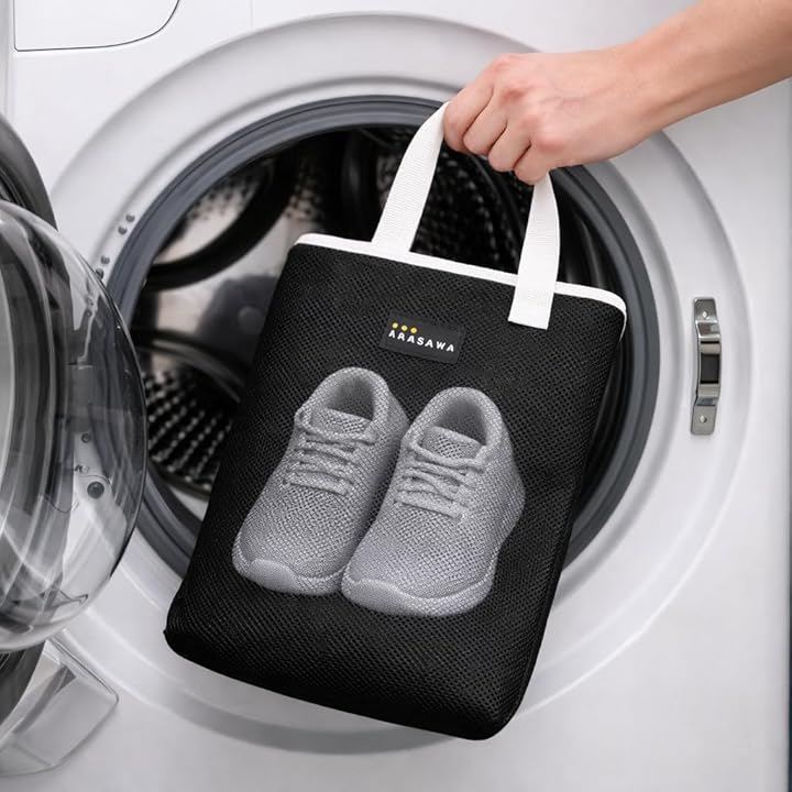 そのまま洗濯可能な洗濯ネット仕様。 小学生の上履き入れに最適サイズです。