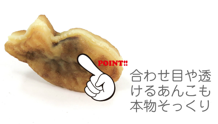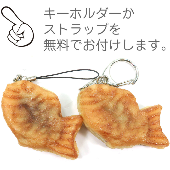 長さ6.5cmのミニサイズのたい焼きの食品サンプルアクセサリーです。中味のあんこが透けて見える所まで再現しています。もちろん裏も表もちゃんと作っています。