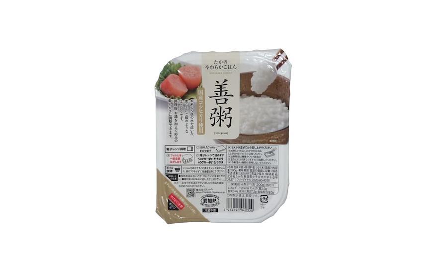 5倍の水で炊いた、お粥では一番水分の少ない「全粥」。柔らかいごはんのような仕上がりで、お箸で食べられる新しいタイプのお粥です。咀嚼しやすく飲み込みやすいので、風邪などの病気の時だけでなく、歯の治療中のほか、食欲がない時や介護食、離乳食にもオススメです。1パック142kcalと低カロリーなので、ダイエットにも。