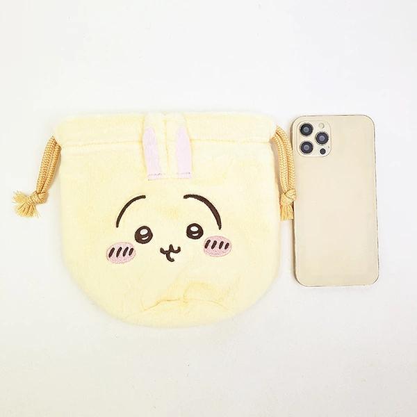 ちいかわ(うさぎ)のふわふわ素材のフェイス巾着です。マチ付きなので小物の持ち運びにも便利☆内生地まで可愛いなんてずるい~!!愛らしい表情がとてもキュートな巾着です♪